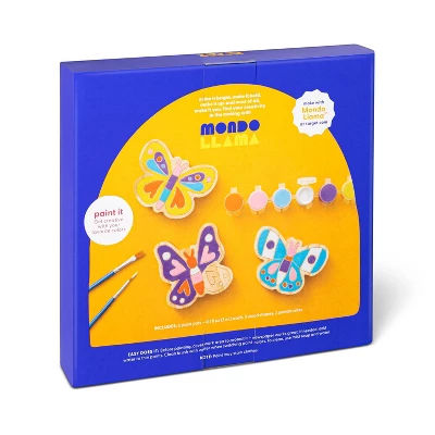 Add a fun to your family’s downtime with this Paint-Your-Own Wood Butterflies Kit from Mondo Llama™. This paint-your-own craft kit features three wooden butterfly shapes to let you paint them just the way you like. It comes with six paint pots to let you decorate in a variety of vibrant shades, while the two included paintbrushes let you easily start painting right away. Great for weekend activities or perfect as a gift, this wooden butterfly decoration paint kit will let you show off your creative side, or makes a great rainy day activity for kids ages 3 and up.