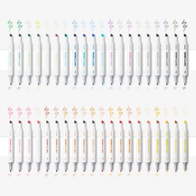 With this 40-Count Alcohol Markers Broad & Fine Dual-Tip Set from Mondo Llama™, you’ll be able to add beautiful, blendable color to a variety of artistic creations. These dual-tip markers feature both a 2.2mm broad-tip chisel end for bigger color coverage or bold hand lettering, and they also each have a 1.0mm fine-tip end for doing smaller detail work. The alcohol marker design allows you to blend colors for a greater range of looks, making this marker set perfect for shading and layering. Suitable for use on paper, glass, wood, metal and plastic, these markers are the real deal and are best used with heavyweight paper or with an extra piece of scrap paper under your project to avoid the markers soaking through. Plus, this multicolor marker set is great for taking on the go since it comes in a convenient zip storage and carrying case with a handle on top.