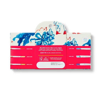 Whether you’re new to painting or have been painting for years and are looking to update your supplies, an Artist Paintbrush Set from Mondo Llama™ makes a great addition to your painting tools. This pack of paintbrushes comes with six brushes — medium filbert, large filbert, medium angle, large angle, medium round and large round — each clearly labeled to help you grab just the right one for the task at hand. The brushes have synthetic bristles that have a smooth texture to give your artwork an even finish you’ll appreciate. Suitable for use with acrylic, tempera and other types of paint, these brushes are ones you’ll reach for again and again. Artwork by Amber Vittoria.