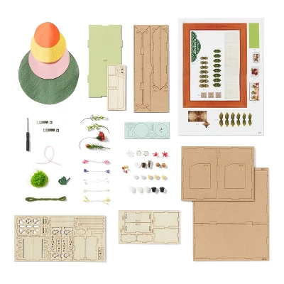Enjoy a fun craft activity on a rainy day with this Miniature Build Flower Shop Craft Kit from Mondo Llama™. The miniature flower shop craft kit includes wood pieces, craft paper, printed paper, plastic film, screws and more, along with an instruction sheet to help guide you through the process. Plus, it also comes with faux grass, flowers and other accessories. Once done, you can place the finished product on any tabletop or shelf to show off your work.