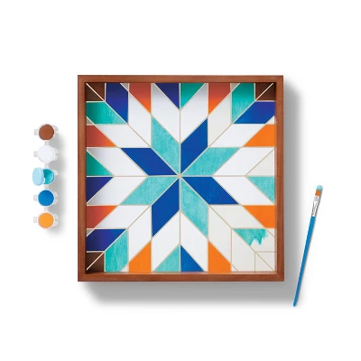 Create a unique piece of art with this Paint-Your-Own Wood Mosaic Kit from Mondo Llama™. Made from a light-hued wood, this square wooden decoration features a geometric design that’s left unfinished to let you paint it as you like to create a colorful mosaic. The kit comes with five mini paint pots and two paintbrushes to easily fill in the neutral wood with the colors of your choice. Supported on a wooden frame, the finished mosaic looks stunning and can be used as a decorative accent for your tabletop or mantel.