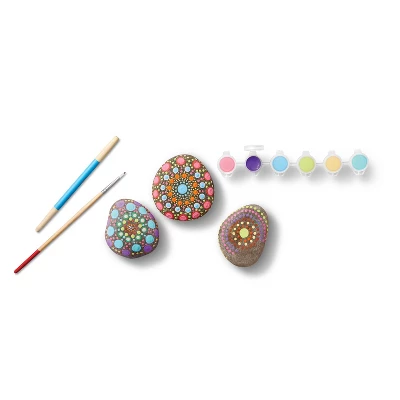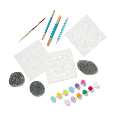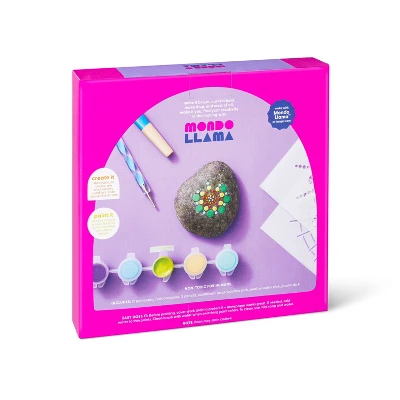 Decorate rocks with beautiful designs with this Create-Your-Own Mandala Rocks Kit from Mondo Llama™. This creative painting kit includes three cobblestones, three stencils, 12 paint pots, a paintbrush, a large wooden stick, a small wooden stick and a plastic stick to help you create eye-catching mandala designs on the rocks. The different paint colors help you add life to your designs, making it a perfectly fun and relaxing activity to brighten your or your child’s day.