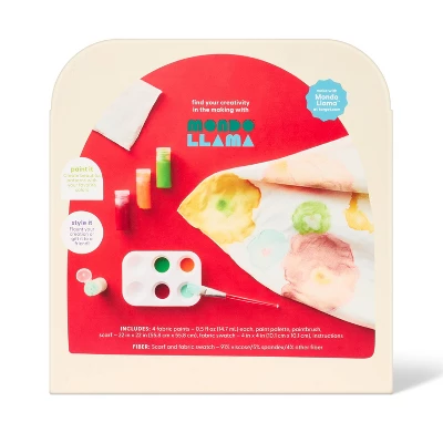 Showcase your painting interests with the Scarf Fabric Paint Dye Craft Kit from Mondo Llama™. This paint dye craft kit includes an instruction manual, paint, paintbrush, paint palette and scarf to help provide the essentials for painting. Simply create colorful patterns and flaunt it as you head out or gift it to a loved one.
